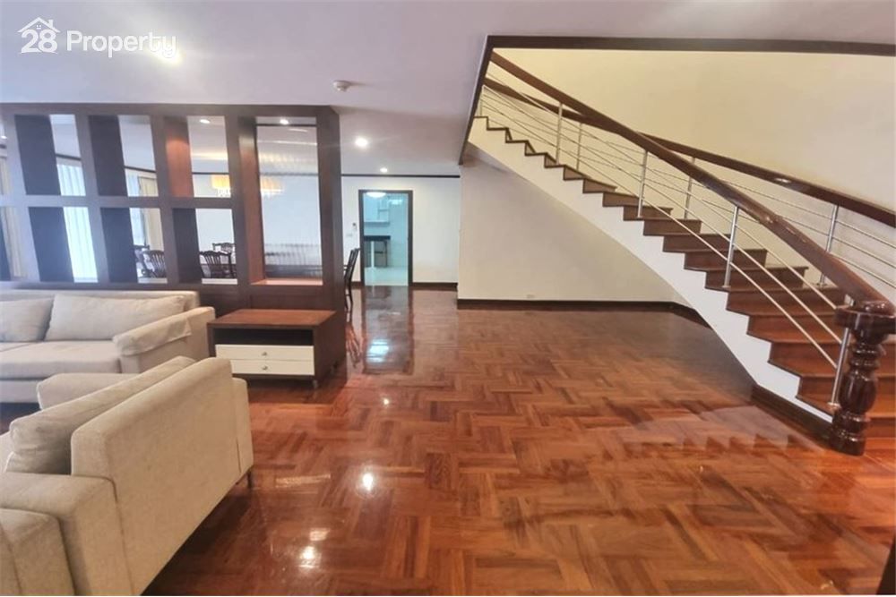 Welcome to your new home in Sukhumvit 24! This spacious duplex apartment features 3 bedrooms and 3 bathrooms, perfect for families or anyone looking for extra space. With a generous size of 300 sqm, you'll enjoy high ceilings and a bright, airy atmosphere.