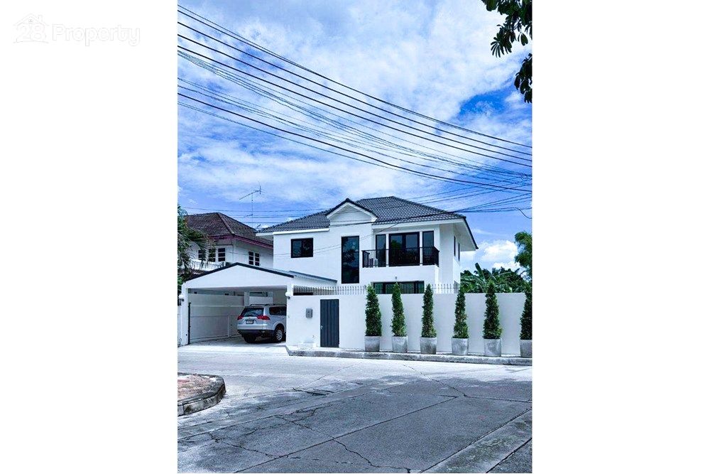 Discover your ideal family home in a serene and secure private compound on Sukhumvit 71. This spacious detached single house, featuring two stories and a generous 350 sq.m. of usable space, has been newly renovated to offer a fresh and modern interior while retaining a cozy residential atmosphere.